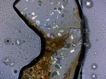 2- Polimetales (Patricio Saavedra)Patricio Saavedra y Fernán Federici Cada lámina de ”Polimetales” como expresión autónoma, muestra el líquido del mar cristalizado, congelando el movimiento propio de estos metales pesados, y cómo esta sustancia tiene la capacidad de desvanecer las capas que conforman la imagen, borrando de esta manera toda huella existente, remitiendo un pasado infame y latente. Sustentándose en la historia y fundamentándose en la ciencia, estas representaciones visuales evocan una fragilidad subyacente, natural y material, las cuales desde «una tragedia», invitan a cuestionar y reflexionar como reencarnamos, perpetuamos o desmantelamos estos legados hoy.